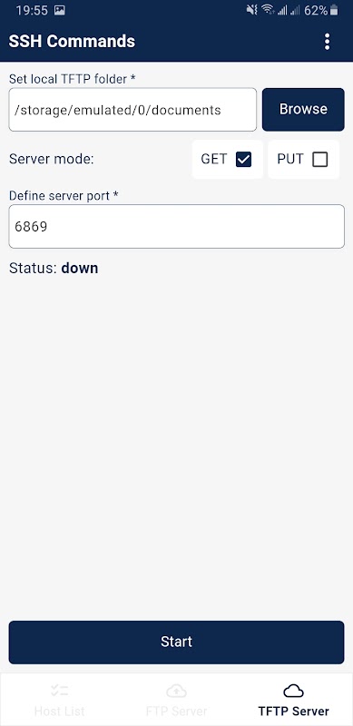 Inicie servidores FTP ou TFTP selecionando um número de porta no intervalo 1024–65535. Transfira arquivos facilmente entre dispositivos com clientes FTP e seu dispositivo móvel.