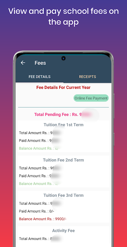 • Detalhes da taxa - Veja os detalhes completos da taxa (paga/saldo/recibos)