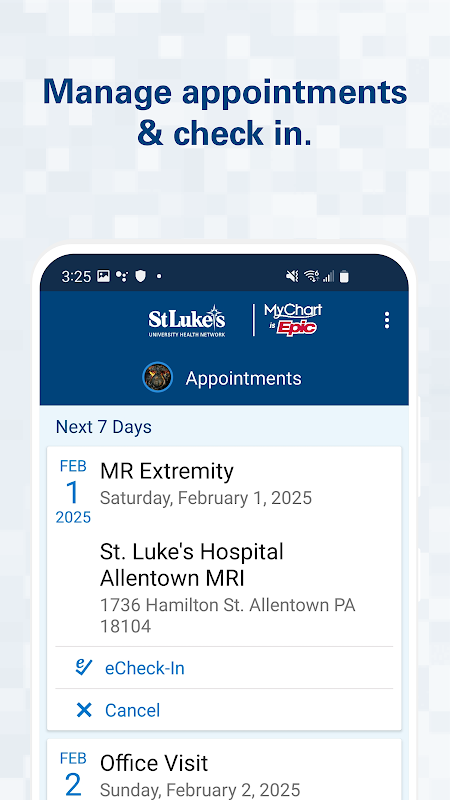 Procure compromissos disponíveis e agende diretamente no aplicativo. Faça login a qualquer momento para ver detalhes de compromissos futuros e anteriores. Aproveite o eCheck-In quando disponível e cancele compromissos que você não pode marcar.