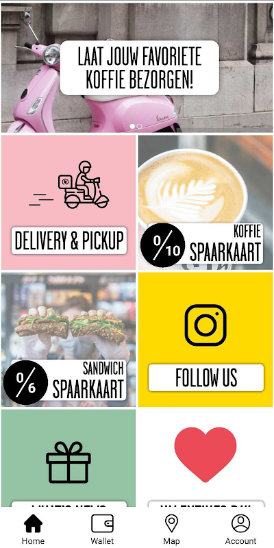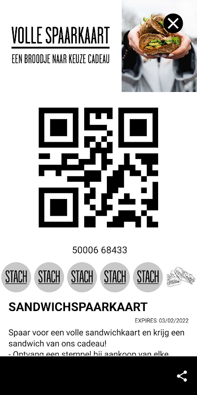 - Met de app spaar je makkelijk voor gratis koffie en sandwiches naar keuze.