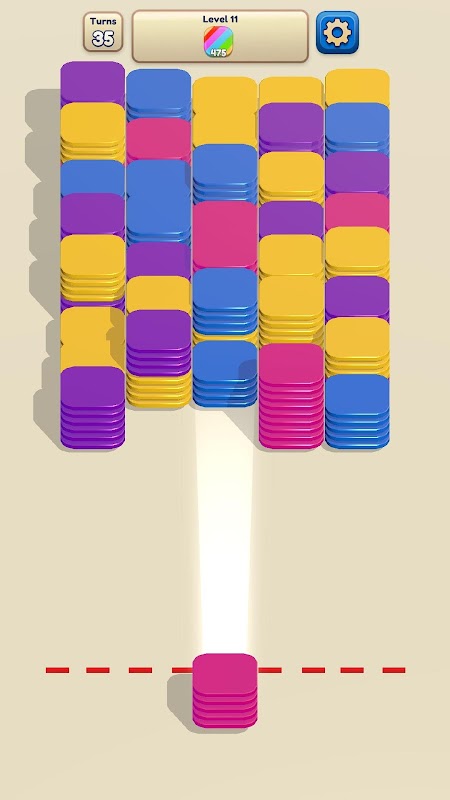 Stack Shoot é um jogo de quebra-cabeça relaxante, onde você pode atirar com pilhas de fichas coloridas e mesclá-las.