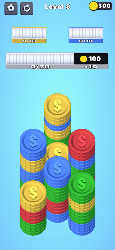 Bem-vindo ao Stack Sort Puzzle, um quebra-cabeças satisfatório de classificação de moedas onde você coleta e organiza pilhas de moedas coloridas para concluir tarefas desafiadoras. É uma reviravolta única nos jogos clássicos de combinação - em vez de combinar três, você precisará reunir 10 moedas da mesma cor para marcar!
