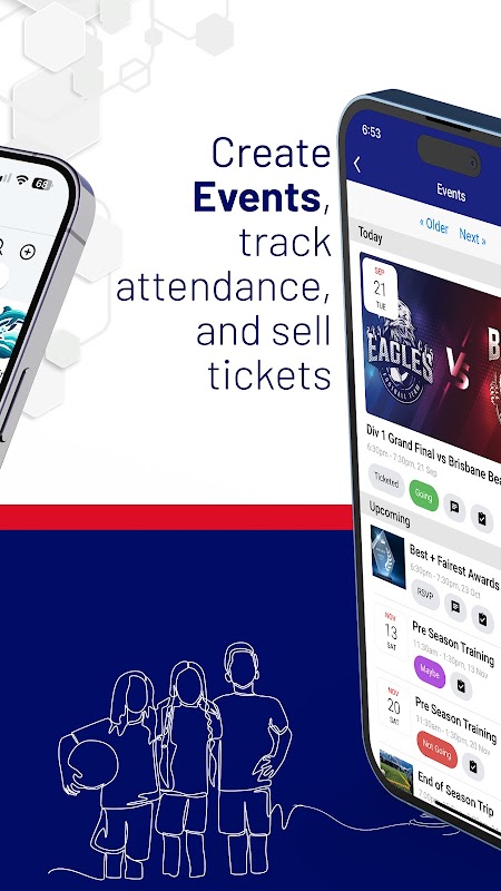 • Crie grupos de acesso separados, como jogadores, pais e treinadores para agilizar a comunicação.