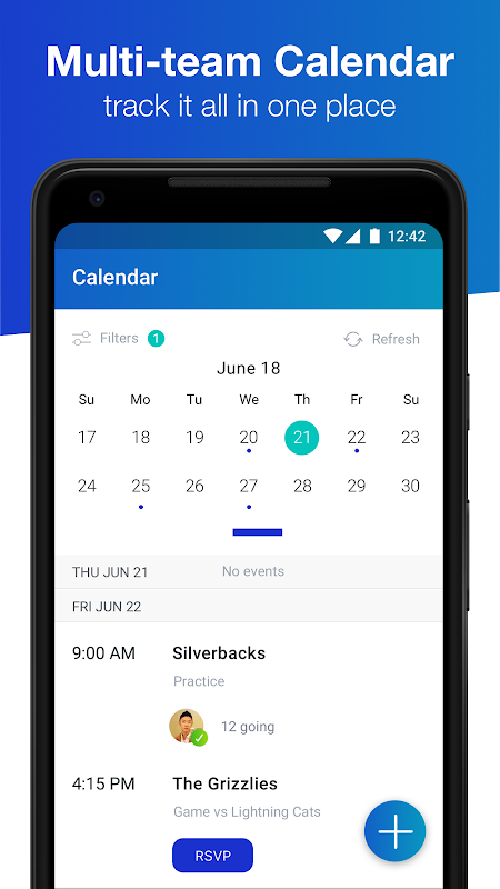 • ROSTERS - Acompanhe os membros de sua equipe e suas informações de contato, além de anexar os perfis dos pais aos jogadores para que você possa sempre entrar em contato.