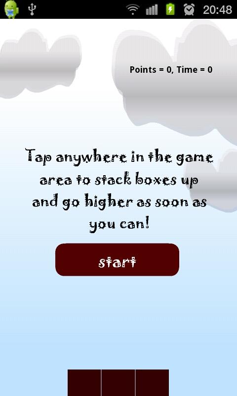 Stacking is a game where gamers need to stack boxes up. They are ranked based on their score and time.