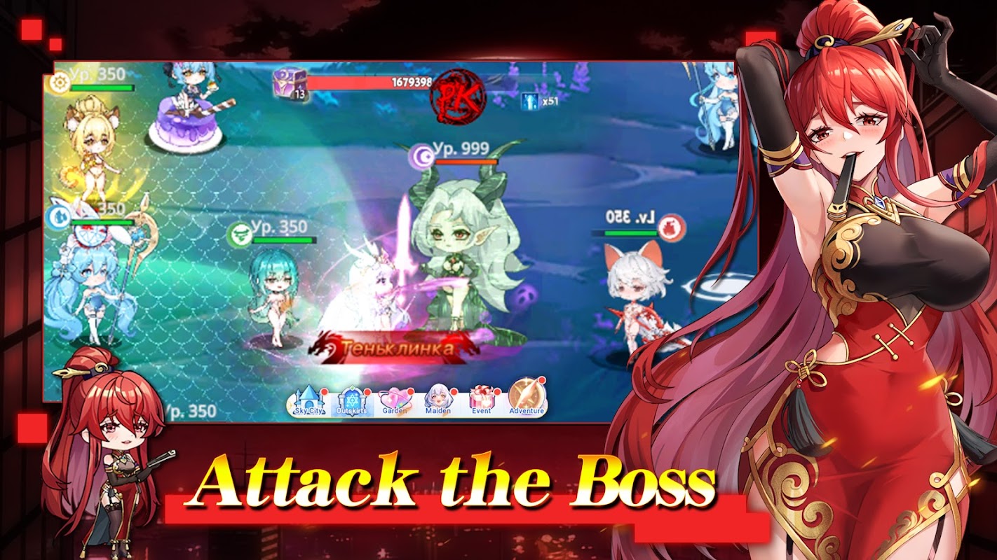 Elenco Inicial:Mais de 100 donzelas únicas em cinco facções: "Chama", "Gelo", "Vento", "Sombra" e "Luminância".