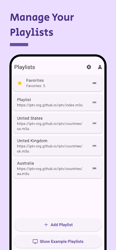 Reproduza todo o conteúdo IPTV em um só lugar com suas playlists.
