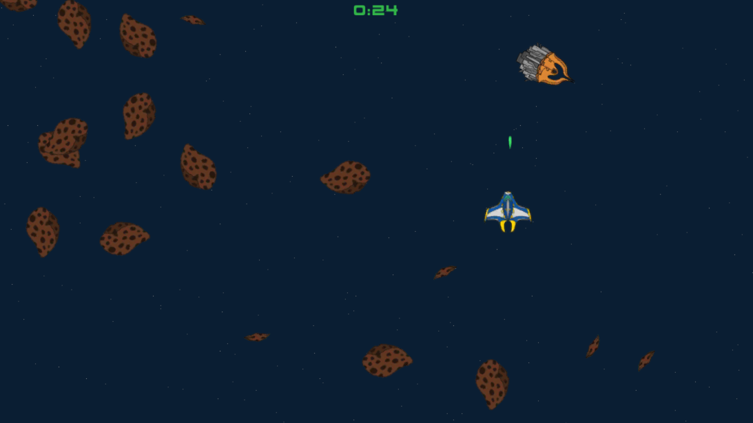 The ship has entered a field of asteroids, so you have to avoid them to survive. At the same time, there is a number of enemy ships and they all want to destroy you!
