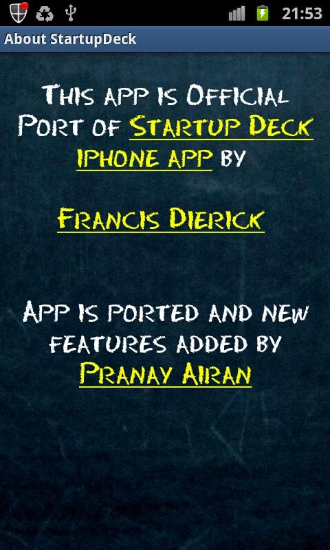This app is official port of StartupDeck iPhone app by Francis Dierick