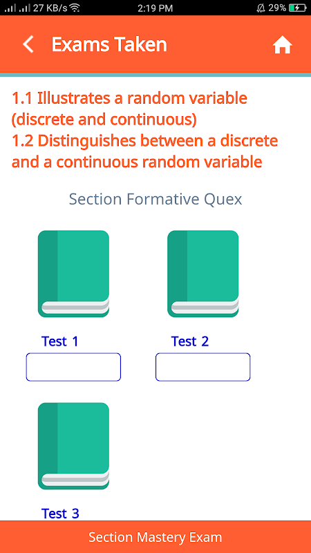 O QuexBook é um módulo de aprendizado móvel padronizado no Guia do Currículo K12 do Departamento de Educação (DepEd K a 12 CG), desenvolvido para aprimorar e fortalecer o conhecimento sobre vários assuntos em Assuntos de Ensino Fundamental e Médio.