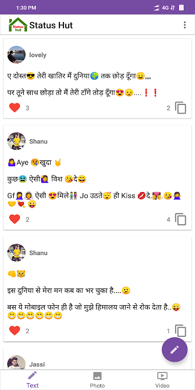 The StatusHut is a status application It's created for status lovers. You can find here all type of status. This application has 3 type of category.