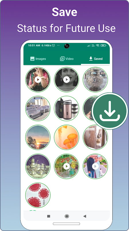 Ele salvará vídeos e imagens do WhatsApp Status no seu dispositivo Android. Isso manterá as imagens e vídeos de status para você para sempre e você poderá compartilhar com seus amigos e nas redes sociais mais tarde.