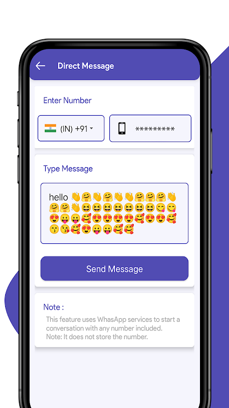 •Note :This feature uses WhasApp services to start a conversation with any number
