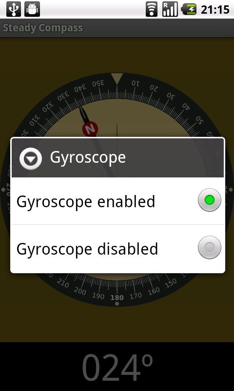 O aplicativo faz uso de dados do sensor giroscópio em dispositivos que possuem esse tipo de sensor.