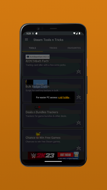 O aplicativo contém uma coleção de ferramentas e truques Steam para perfis e o cliente Steam.