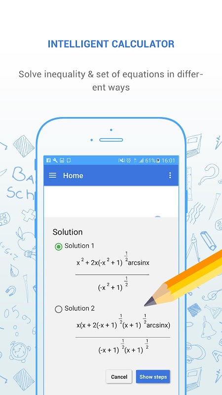 Você está cansado de centenas de exercícios de matemática para resolver todos os dias. Não há mais cálculos pesados, nossa aplicação resolver equações de matemática, resolver qualquer conta de matemática. Deixe nossa aplicativo de resolver problemas de matemática tornar-se um assistente eficaz para ajudá-lo a se tornar um matemático superior.