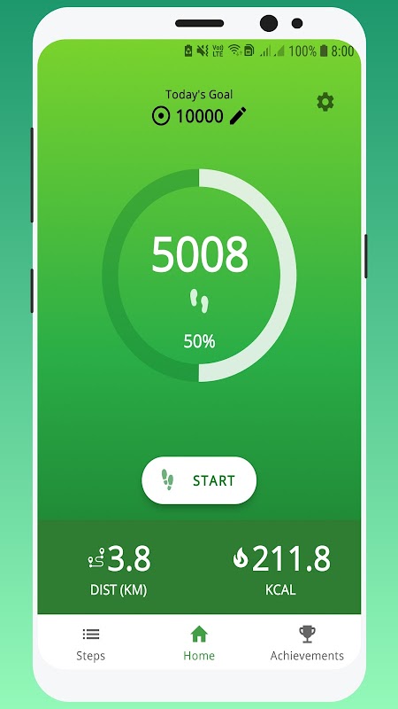 Você pode definir e personalizar sua meta diária de passos de acordo com sua preferência e ritmo. Defina sua meta diária de passos e alcance-a.