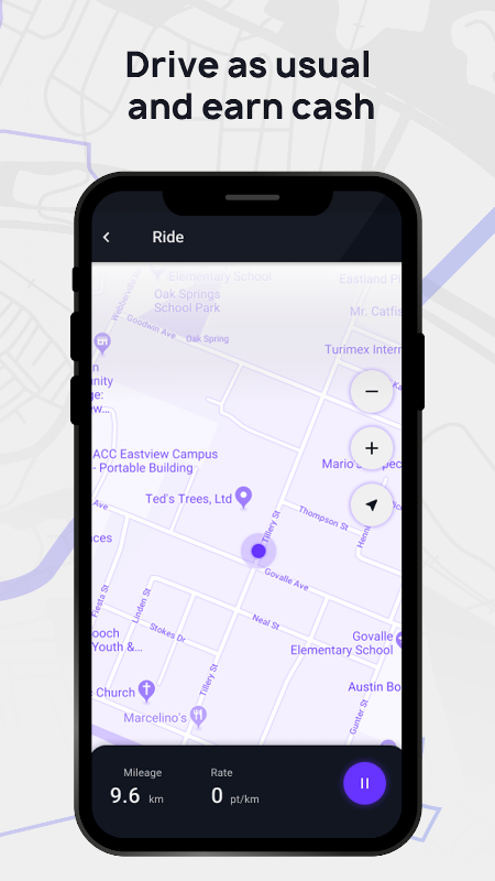 Indo para o trabalho ou levando seus filhos para a escola, basta dirigir como você sempre faz e ganhe dinheiro pelo quilômetro rodado.