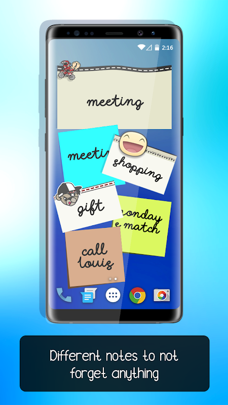 "Sticky notes widget " is a useful tool that allows you to create instant notes for remember day-to-day activities which user can able to identify each notes with different colors. It is a simple sticky note widget that allows you to write notes on the home screen easily, share notes messages through external applications like whatsapp, facebook and many more.