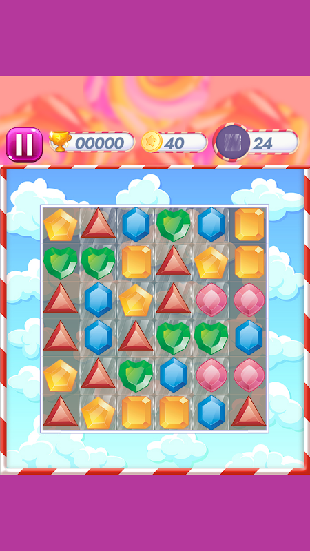 Um jogo casual, três pedras em uma linha podem ser eliminadas com sucesso