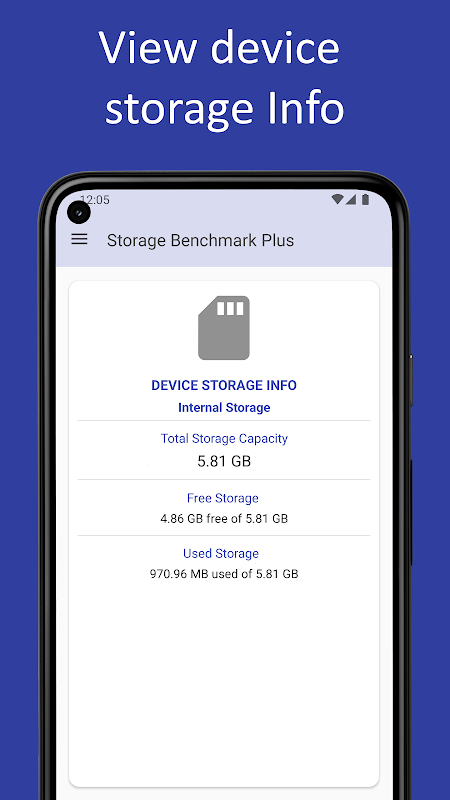 Benchmark your internal storage of your mobile device and view storage related info. Features a unique, safe and fast internal storage benchmark.