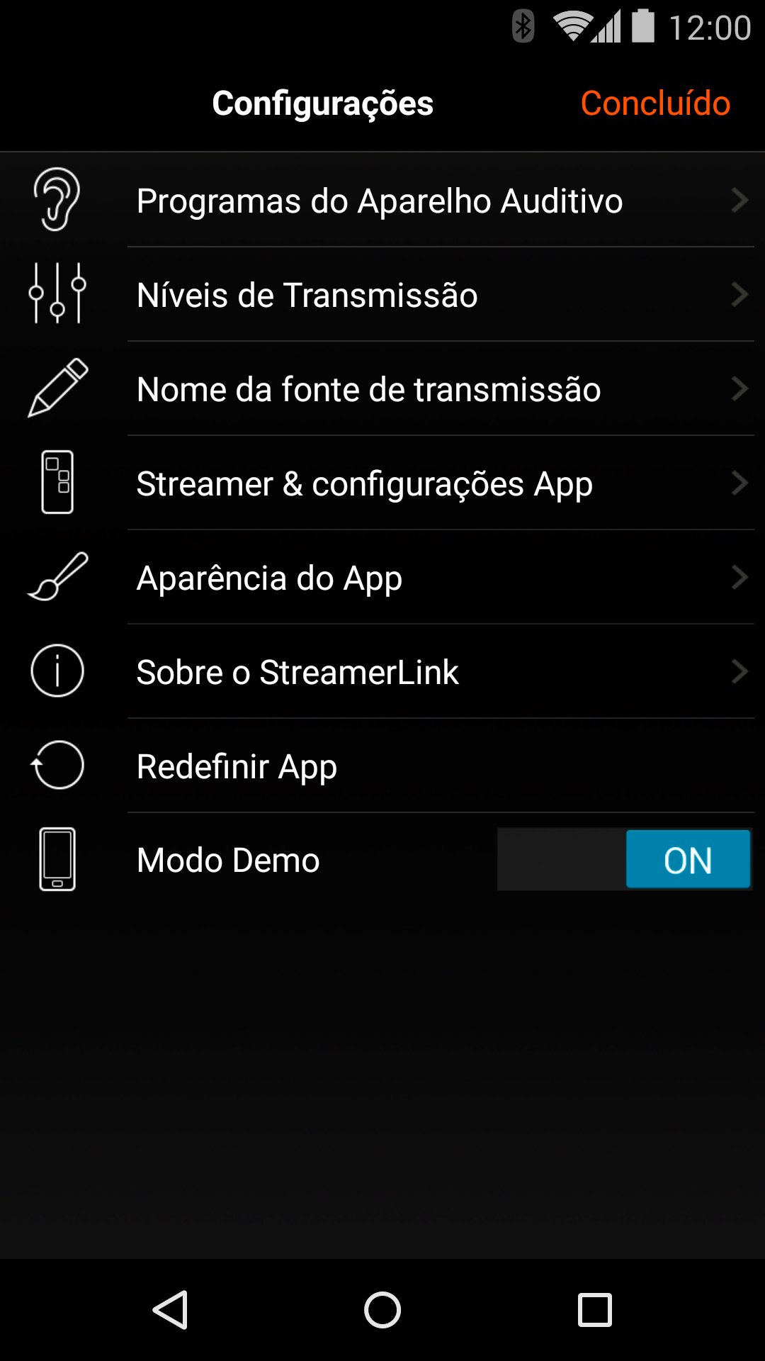 O aplicativo funciona com o dispositivo intermediário Streamer Pro 1.3 App (ou posterior).