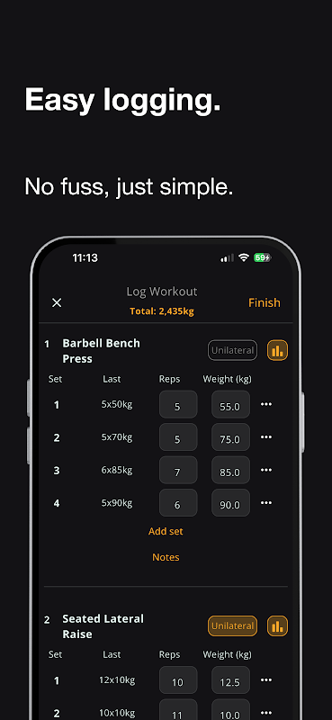 - Desbloqueie conquistas vitalícias que destacam o peso total levantado