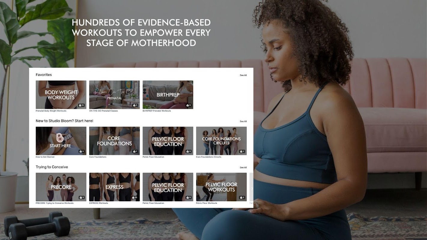 Transforme sua jornada de condicionamento físico com Studio Bloom: o principal aplicativo de condicionamento físico pré e pós-natal