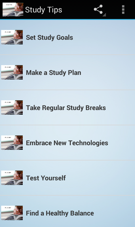 Esta aplicação fornecer dicas de estudo e truques para estudante