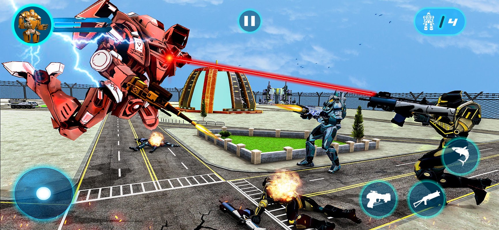 Assuma a responsabilidade de impedir uma invasão alienígena de simulação de robôs de máquinas de guerra. As superpotências do mal estão prontas para invadir a cidade mech dos EUA do jogo de transformação de guerreiros de robôs de guerra. Junte-se à equipe de transformação de monstros para resistir aos ataques de tubarão com raiva no simulador de batalha submarina do simulador de armas pesadas do guerreiro do robô de guerra da luta do robô. Esses robôs monstros estão equipados com armas destrutivas da guerra moderna. Elimine incríveis robôs espaciais para ser vitorioso nesta batalha final de navios de guerra navais. Revele os segredos do jogo do carro robô da luta final. Desempenhe o papel de um guerreiro mecânico como um tubarão robô selvagem neste moderno combate de navios de guerra de robôs transformados e robótica transformadora. Levamos a luta de robôs de guerra espacial nas estradas da cidade de alienígenas robóticos para mostrar a destruição. Quando se trata de guerra mecânica do jogo do rei tubarão robótico.