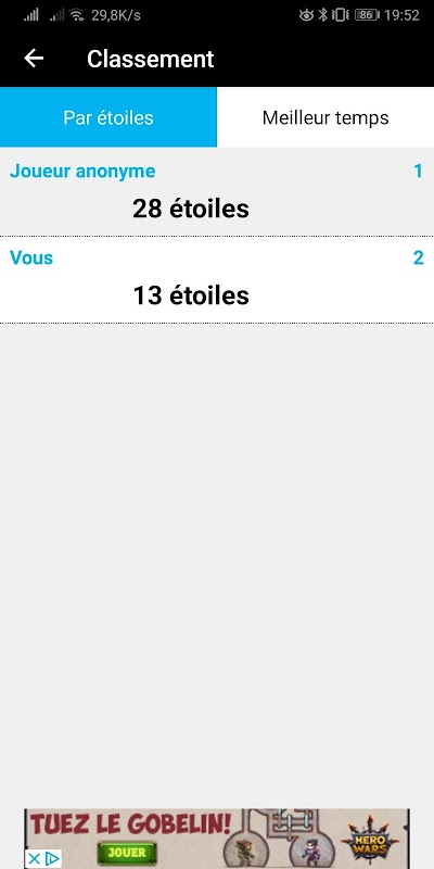 Les autorisations "ACCESS_NETWORK_STATE" et "INTERNET" sont requises pour permettre l'affichage de la petite publicité en bas de l'écran mais aussi pour accéder au classement.