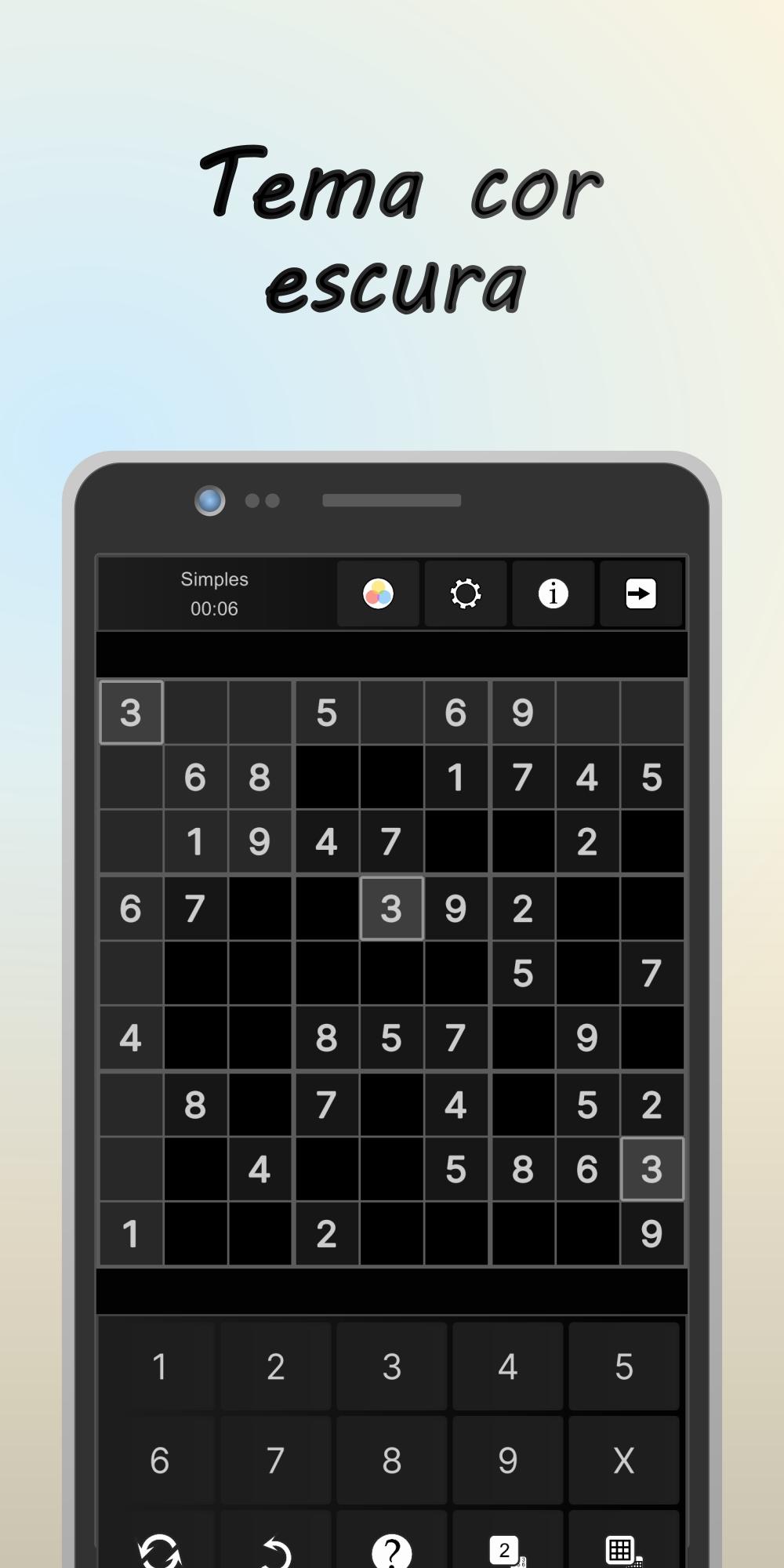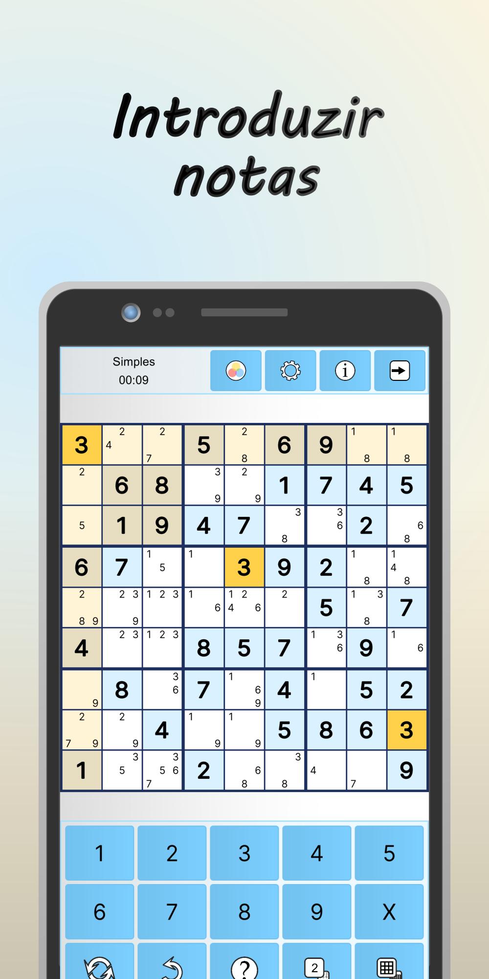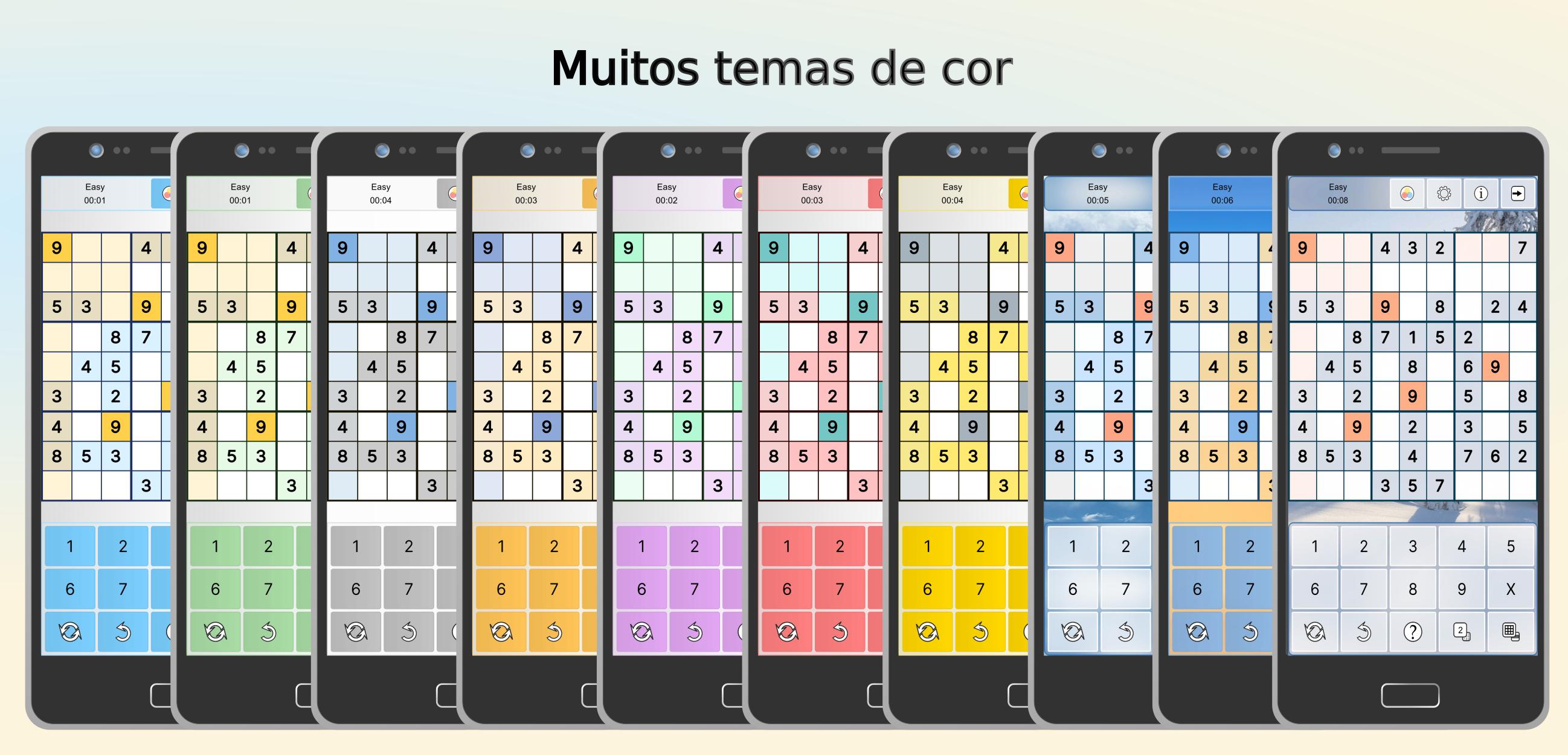 ✓ Destaque de números, filas, colunas e caixas 3x3