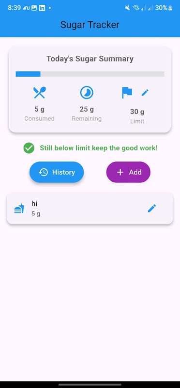 Acompanhe sua ingestão diária de açúcar e mantenha-se saudável com o Sugar Tracker.