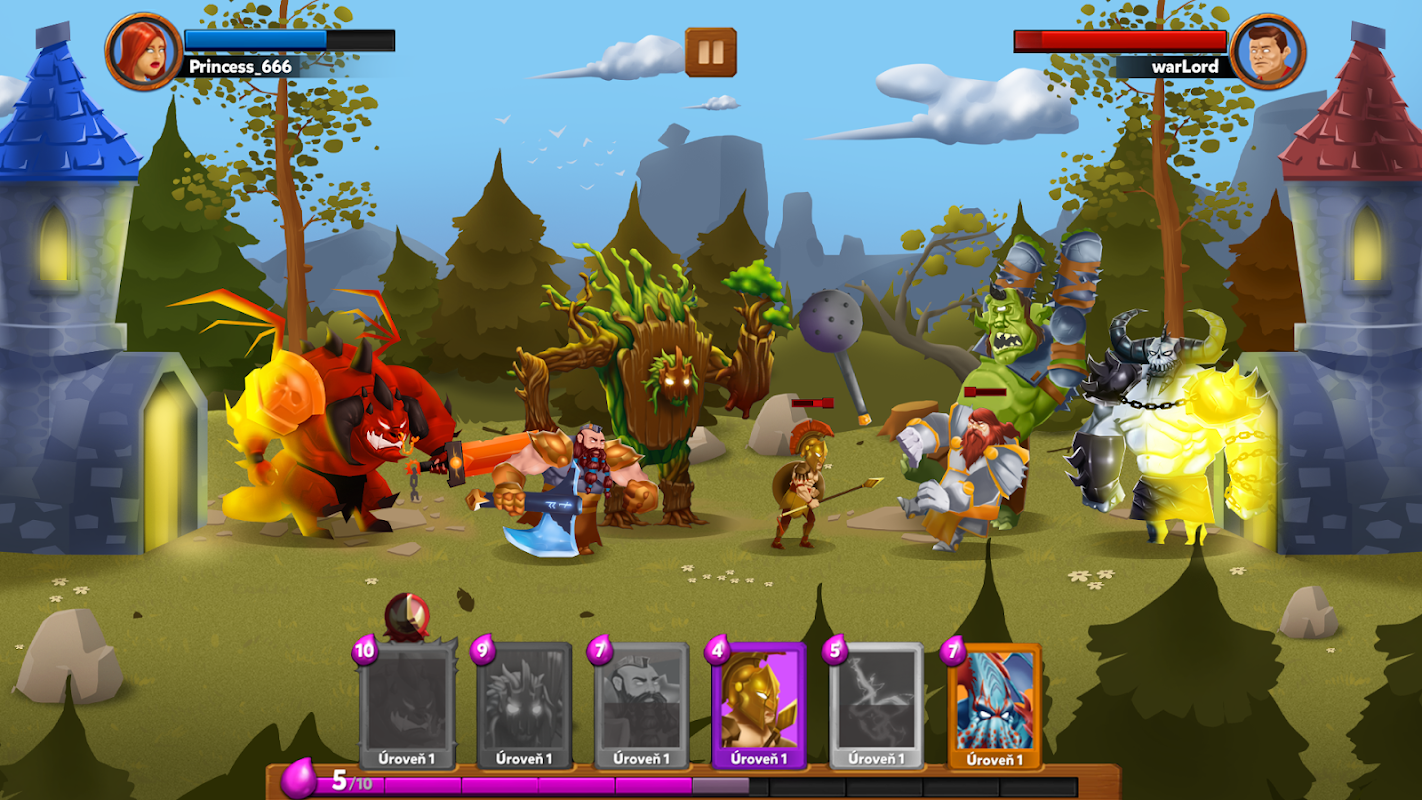 Como se pode começar? Escolha os seus corajosos heróis de cartoon. Que criatura heróica escolhes - orc, goblin, anão ou esqueleto? Constrói o teu exército perfeito e desfruta de duelos épicos de cartas. Guerra, vencer e desfrutar de vitória e recompensas. Desbloqueie, recolha e actualize cartas poderosas colecionáveis com Orcs, Duendes, Feiticeiros, Não Mortos, Esqueletos e outras tropas de muitas facções. Cada herói tem uma capacidade especial / super-poderes. Lançar feitiços globais destrutivos tais como a tempestade relâmpago, chuva de meteoros e muito mais! Abrir arcas mágicas para descobrir novas tropas poderosas, monstros e feitiços! Vai receber uma das cartas lendárias? Pense na sua estratégia e escolha cuidadosamente os seus guerreiros. Tanques para defender o seu exército? Feiticeiros, arqueiros ou artilheiros para matar à distância? Assassinos ou combatentes para furar a defesa rapidamente? A sua estratégia decidirá entre a vitória e a derrota neste confronto!