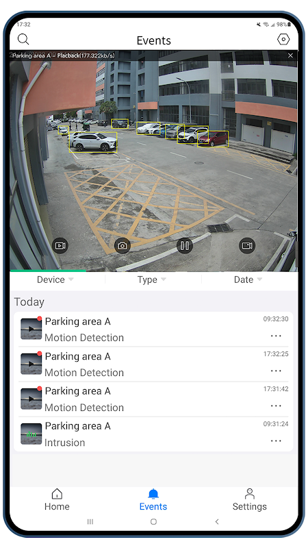 Permite alarmes de anomalia térmica, notificações de eventos IVS de câmeras IP e notificações push de alarme NVR/DVR inteligentes com acesso rápido a gravações e reprodução.