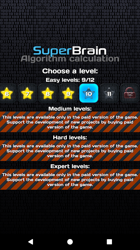 Se inserir o resultado correto, você desbloqueará o próximo nível e assim por diante. Caso contrário, todos os números da tarefa serão alterados aleatoriamente e você terá que adivinhar o algoritmo novamente.