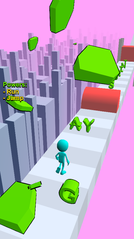 Play a runner in which you need to collect words from letters and bypass various obstacles. Each collected word gives you a special bonus: run, jump, sprint, fly, swim and others.