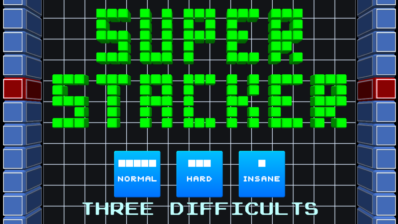 Super Stacker hat eine einfache Steuerung und wird mit einem Finger gespielt, sobald du den Bildschirm berührst wird deine Blockreihe an dieser Stelle gesetzt.