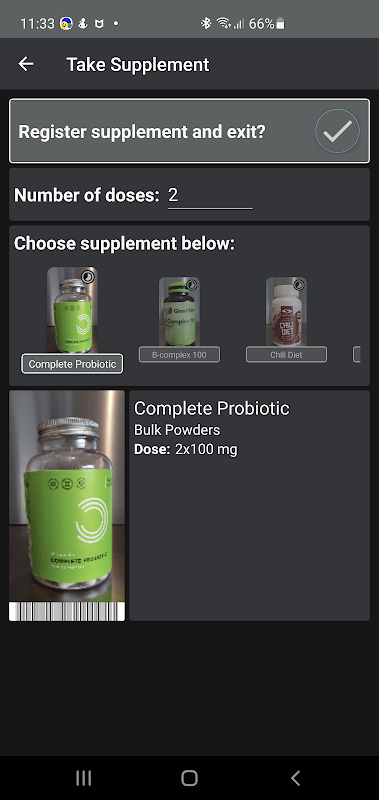 O rastreador de suplementos ajuda você a lembrar e registrar sua ingestão de suplementos e / ou medicamentos. Você pode facilmente adicionar novos suplementos e conectá-los a um código QR, caso em que uma única leitura permite registrar uma ingestão.