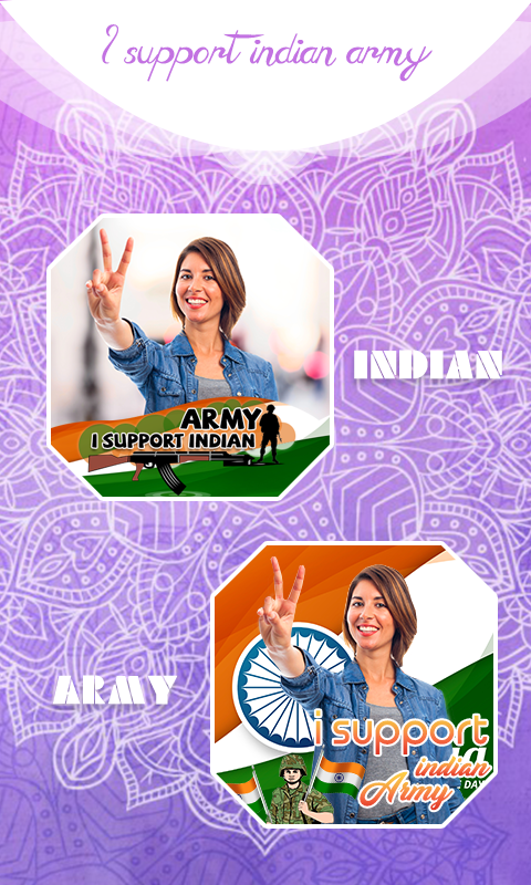 We made indian army photo suit editor application for those who have enthusiasm in Indian army dress photo suit and wish to become a good Indian army brave man or even indian police or soldiers. This army photo suit 2018 app contains indian army uniforms suit just like a Pak army suit uniform intended for male and females, therefore, everyone can set a mutual military dress suit on their photo solely. The indian army suit photo editor 2017 app enclose indian army suits for females to enhance their abilities and to encourage them for joining indian army.