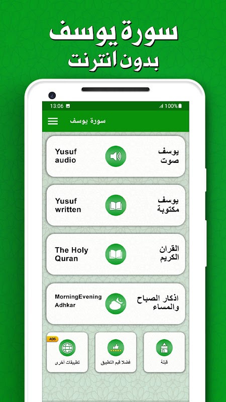 Surah Yusuf sem a rede é um aplicativo que permite baixar Surat Yusuf com a voz dos mais famosos recitadores árabes, o aplicativo usa um formato de arquivo de áudio muito rápido para baixar o aplicativo rapidamente e sem problemas com a possibilidade de direto download da surata.