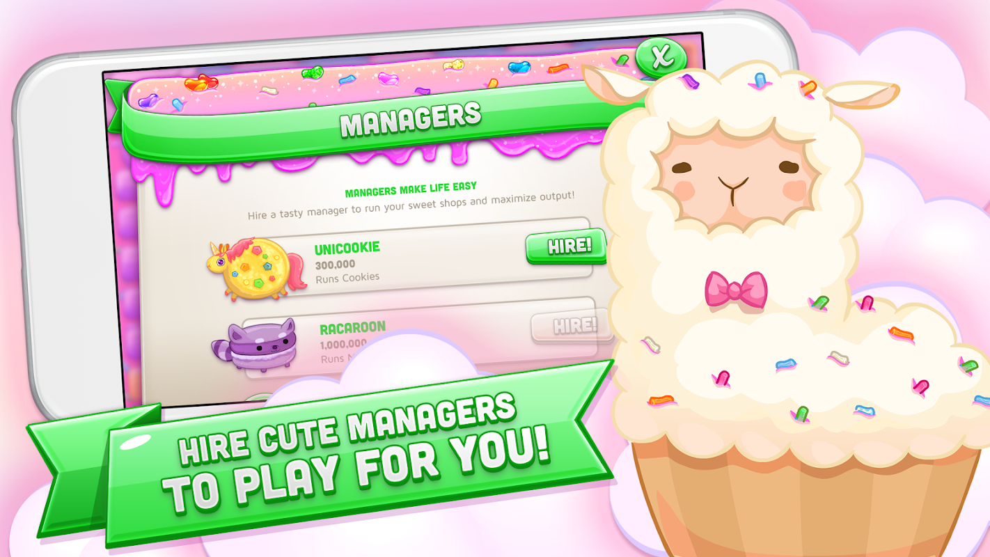 Hire special helpers like Taffydactyl and Unicookie to run your empire around the clock, and when the time is right - cash in for even more sugar fairies to boost your sweet-toothed assembly line!