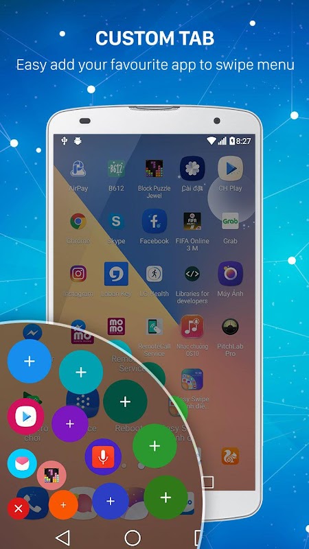 With the Swipe Menu – Quick Swipe Menu Sliding, you can simply swipe from the bottom of the screen to the left or right of the screen, to immediately open a custom layout item circle and hold All your favorite applications and settings are at your fingertips. Unlike other accessibility tools, the Swipe Menu – Quick Swipe Menu Sliding remains hidden until you swipe it to view the applications you are using.