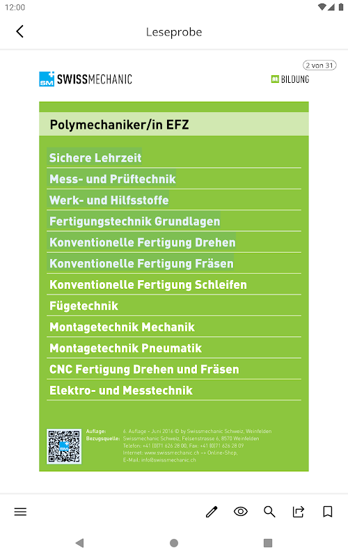 Este aplicativo oferece um acesso conveniente para curso modelo conhecido e outras publicações Swissmechanic.