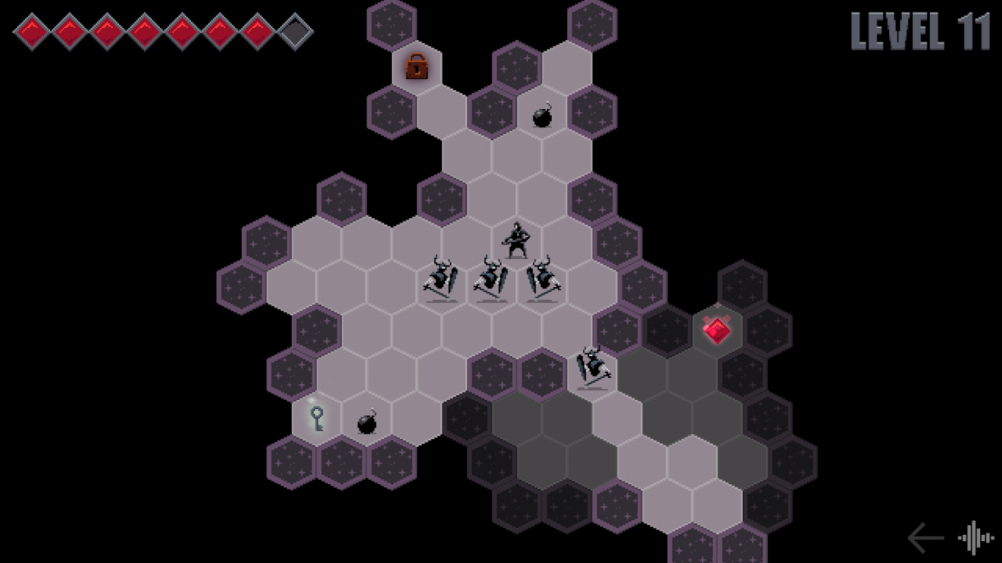 In the game you control a hero equipped with a switch hook. This fancy device lets you switch places with monsters dealing them some damage on the way. When there are few monsters on a level and they are weak and slow, you can use the hook like a ranged weapon without much thought, but later in the game you'll need to choose a right target each turn and use walls, columns and passages to avoid enemies' attacks. There are 20 tiny levels and 8 types of monsters in the game. All monsters except basic "undead warriors" have some uniques features, for example some of them can't be damaged by the hook and others explode when they die.