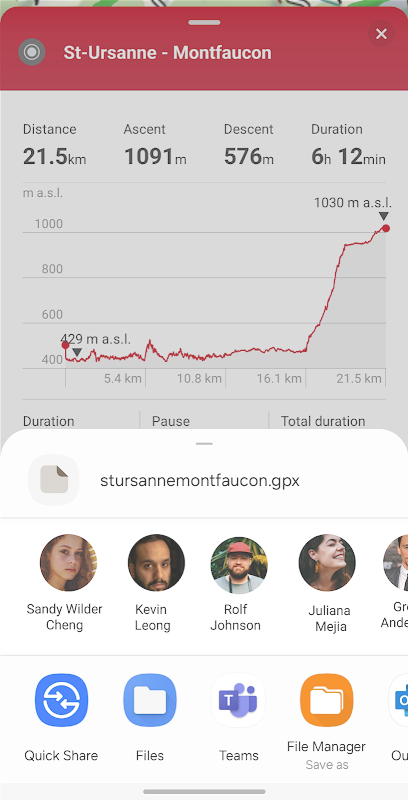 Com SwitzerlandMobility Plus você pode ter seu passeio gravado automaticamente no aplicativo. Isso lhe dá uma visão geral de todas as informações importantes, como distância, altitude percorrida e tempo necessário. Este recurso também está disponível para você com SwitzerlandMobility Plus (taxa extra).