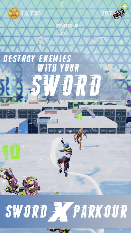 Mestre parkour, empunhe sua lâmina de espada cibernética. Conquiste desafios futuristas.