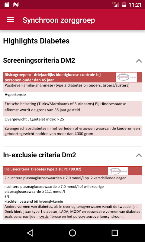 De inhoud van de app bestaan onder andere uit andere highlights van zorgprogramma Diabetes, transmurale afspraken en informatie over scholing.