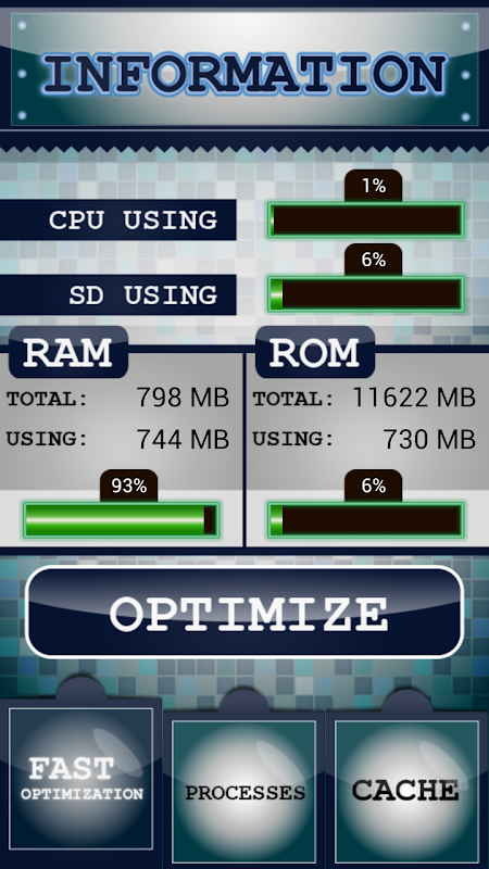 Usando de aplicação é fácil. Traz-lhe botão rápido optimização para limpar a memória do telefone simples e eficaz ( gerenciamento de memória ) e aumentar os recursos de CPU livres ( gestão de CPU ).