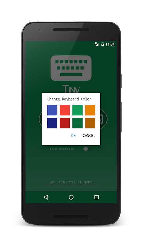 Você pode escolher entre 8 cores ou definir o seu próprio tamanho do teclado. O Tiny Text também suporta diferentes layouts de teclado: QWERTY, AZERTY, QWERTZ, DVORAK e Colemak.